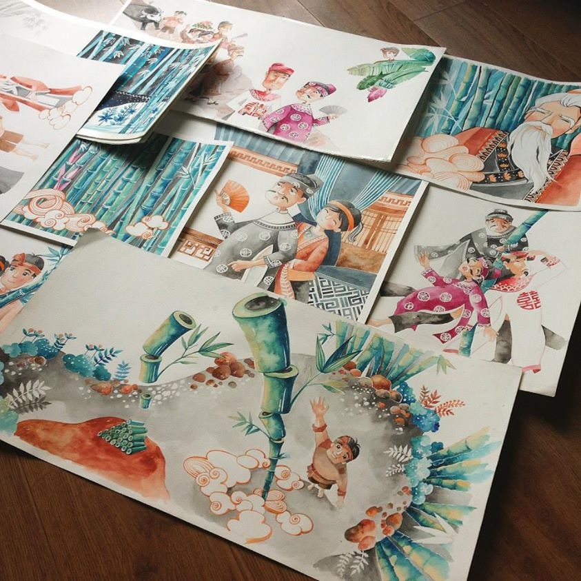 Với mong muốn tạo ra ấn phẩm truyện cổ tích sống động và hấp dẫn trẻ em, Nguyễn Thùy Anh - sinh viên năm cuối ĐH Mỹ Thuật Công Nghiệp - đã làm đồ án tốt nghiệp thiết kế minh họa truyện cổ tích Cây tre trăm đốt. Sản phẩm được thực hiện khá sáng tạo khi có chức năng chiếu bóng.