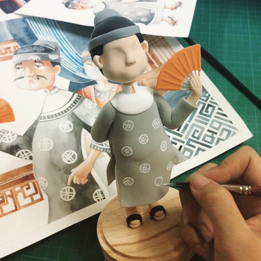 | Mô hình nhân vật bằng đất sét được thiết kế đi kèm với bộ sản phẩm. |