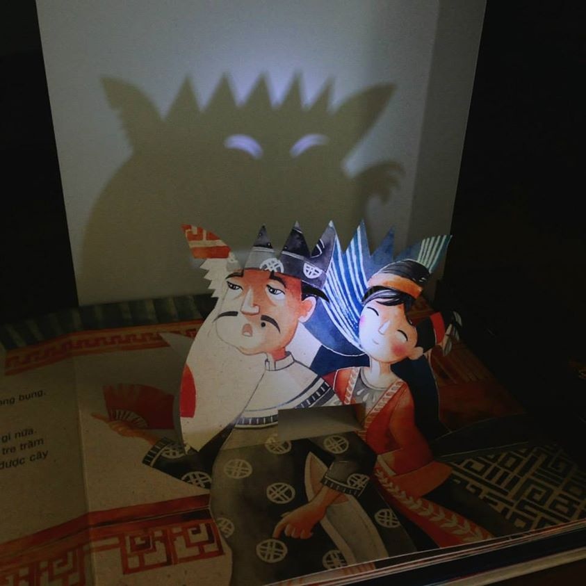 | "Với bộ tranh có chức năng chiếu bóng, dù cho có bận rộn, bố mẹ vẫn có thể dành vài phút cuối ngày để tắt đèn, dựng cuốn sách lên và kể cho trẻ nhỏ nghe những câu chuyện dân gian vốn đã rất quen thuộc" - nữ sinh nói. |