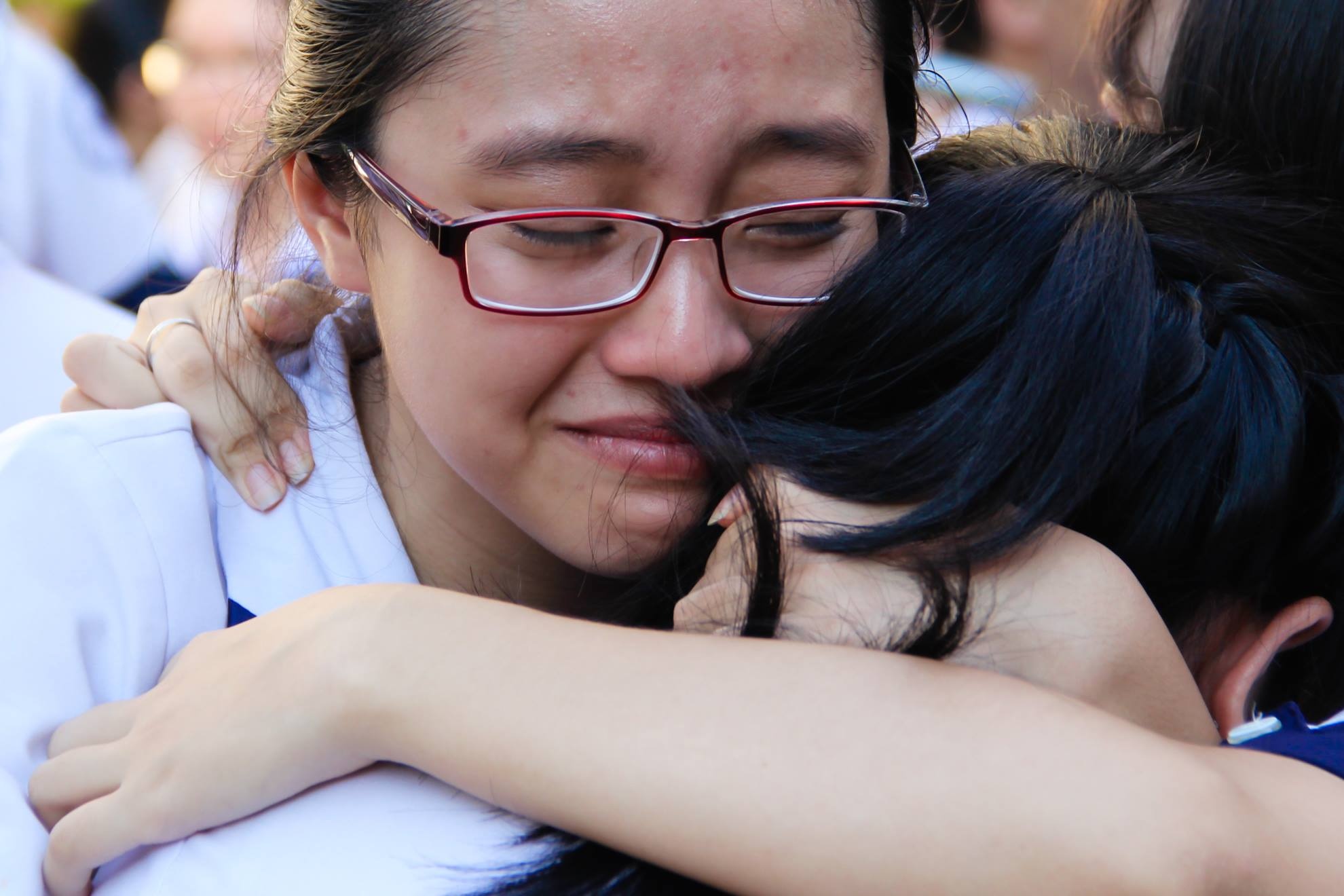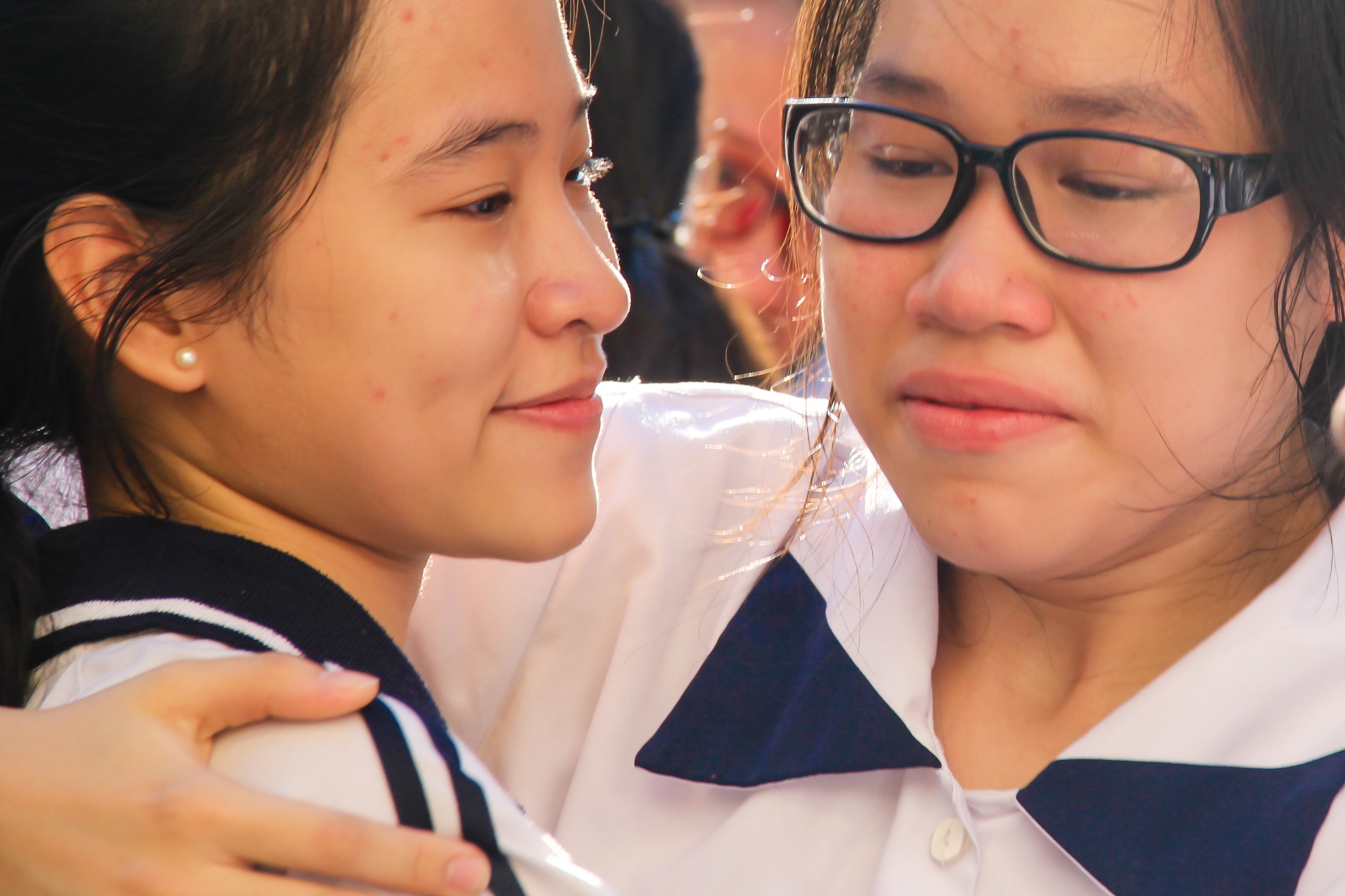 Những cái ôm thật chặt, giọt nước mắt khẽ lăn, thậm chí khóc òa vì xúc động khi giây phút tạm biệt tuổi học trò đã đến với các bạn trẻ lớp 12 trường THPT Trần Đại Nghĩa (TP HCM).
