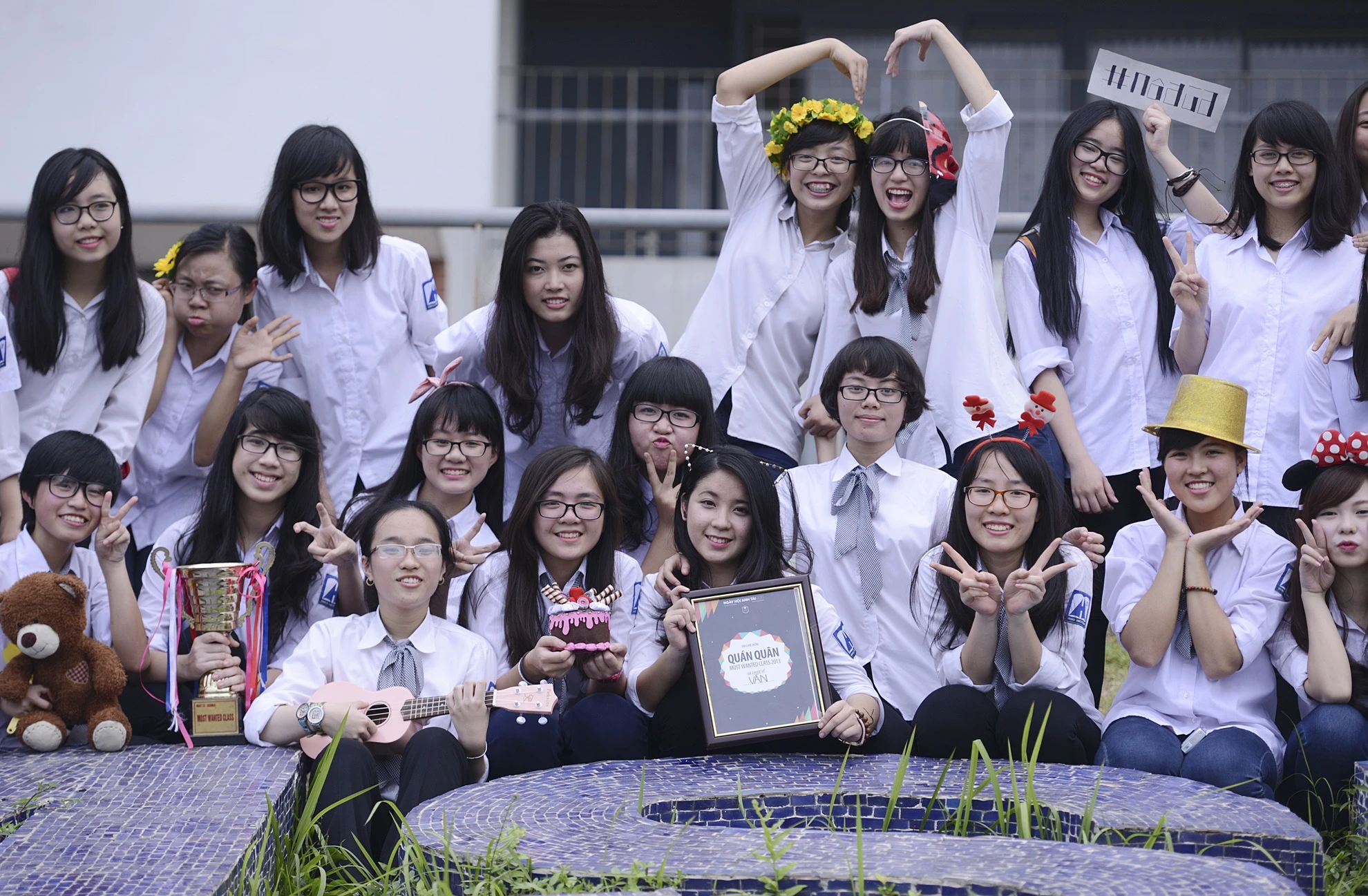 | Ngày 1/4, học sinh các lớp 12 Văn, 12 Pháp Trường THPT chuyên Hà Nội - Amsterdam tập trung trong khuôn viên để chụp ảnh kỷ yếu. |