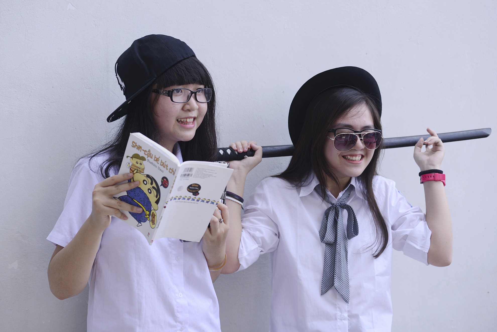 | Các em chọn trang phục đơn giản nhưng đúng nghĩa với tuổi học trò. |