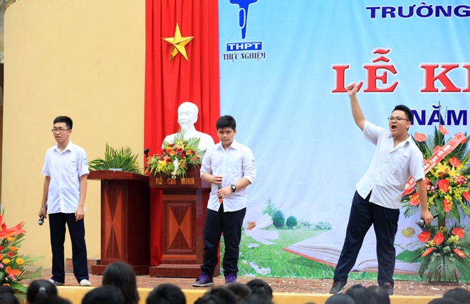 | Sáng nay, trường Thực nghiệm làm lễ khai giảng cho học sinh cấp 3 trước các em tiểu học và THCS. |
