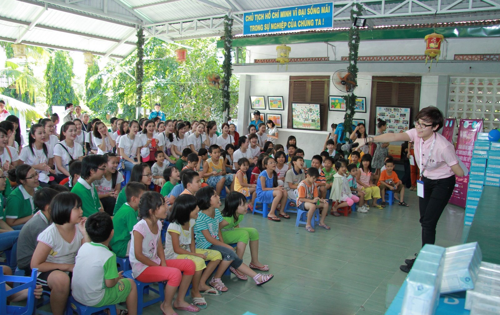 | Sáng ngày 9/11, các nữ sinh đến thăm, tặng quà và nấu ăn cho trẻ em làng SOS (Gò Vấp, TP.HCM). |