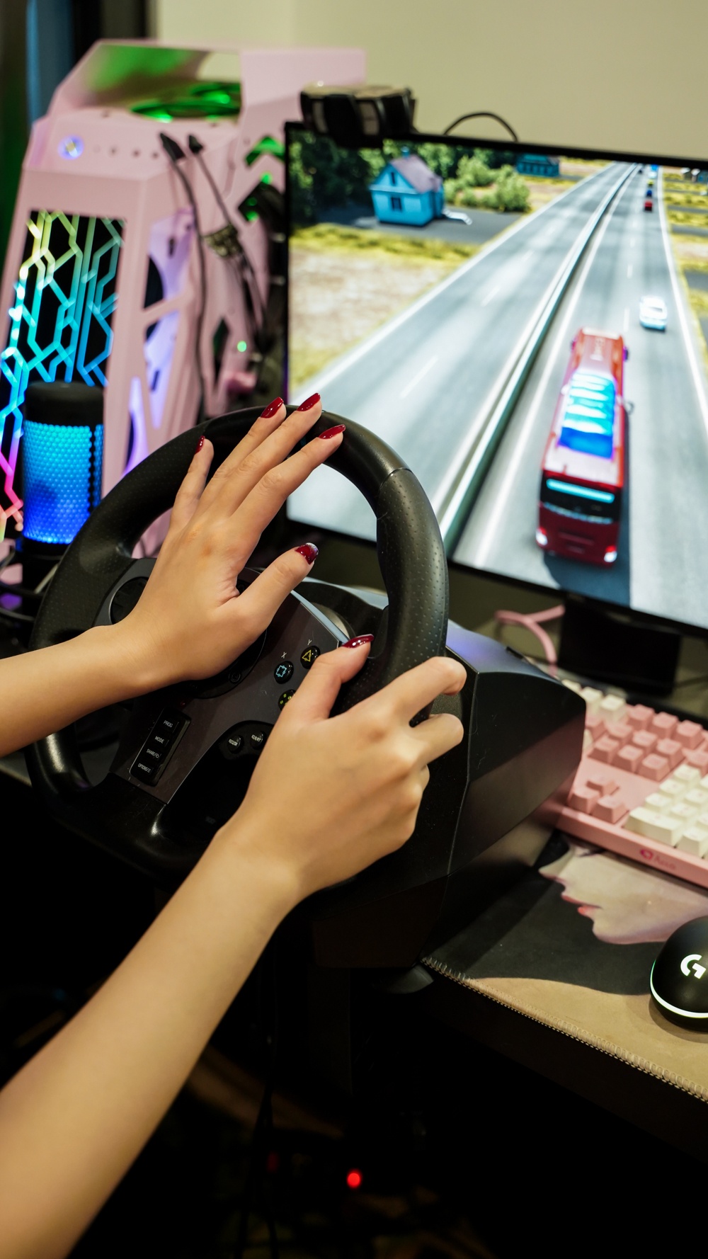 | Tôi chưa biết lái xe thực, vì vậy nhiều người khá tò mò làm thế nào để tôi có thể điều khiển chiếc xe tải, xe khách trong game. Rất đơn giản, để tham gia trò chơi này, bạn cần mua 1 bộ vô lăng có giá từ 5-8 triệu đồng, sau đó kết nối với phần mềm game. |