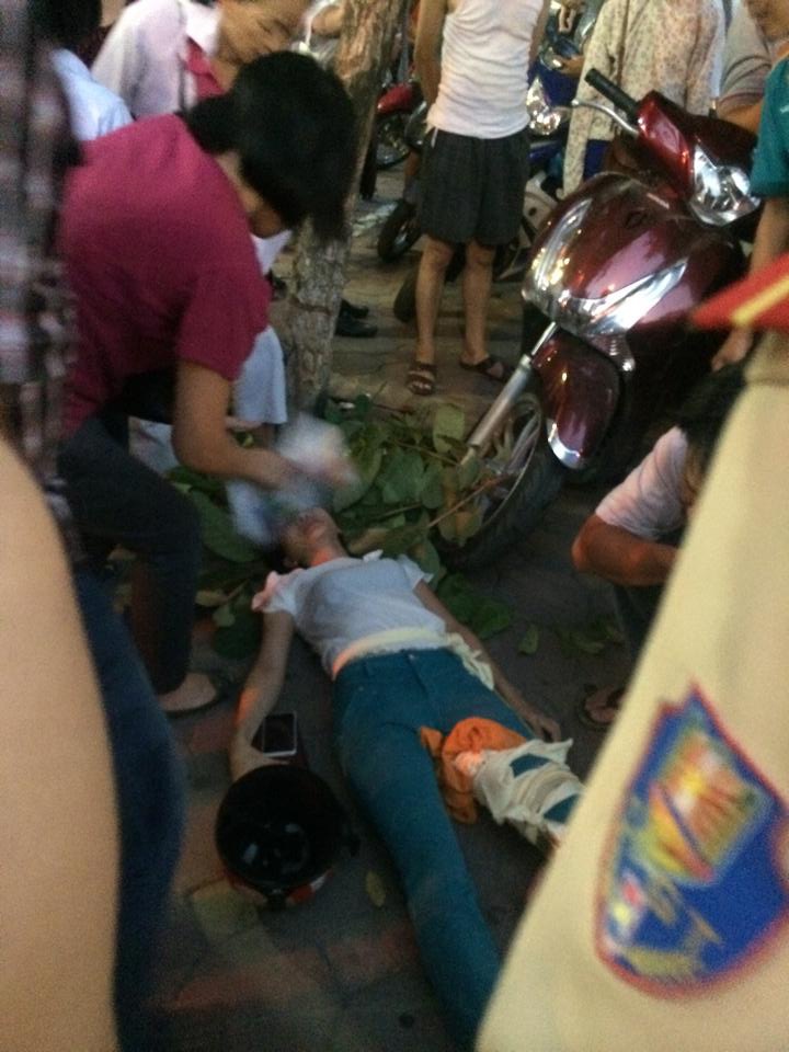 "Một phụ nữ bị đâm gục, gãy xương đùi đau đớn, la hét. 6-7 người khác bị thương hoảng sợ nằm la liệt bên đường", anh Hùng nói. Khoảng 18h45, nữ nạn nhân này được đưa lên xe cứu thương. Còn các nạn nhân khác đã được người dân đưa tới bệnh viện.