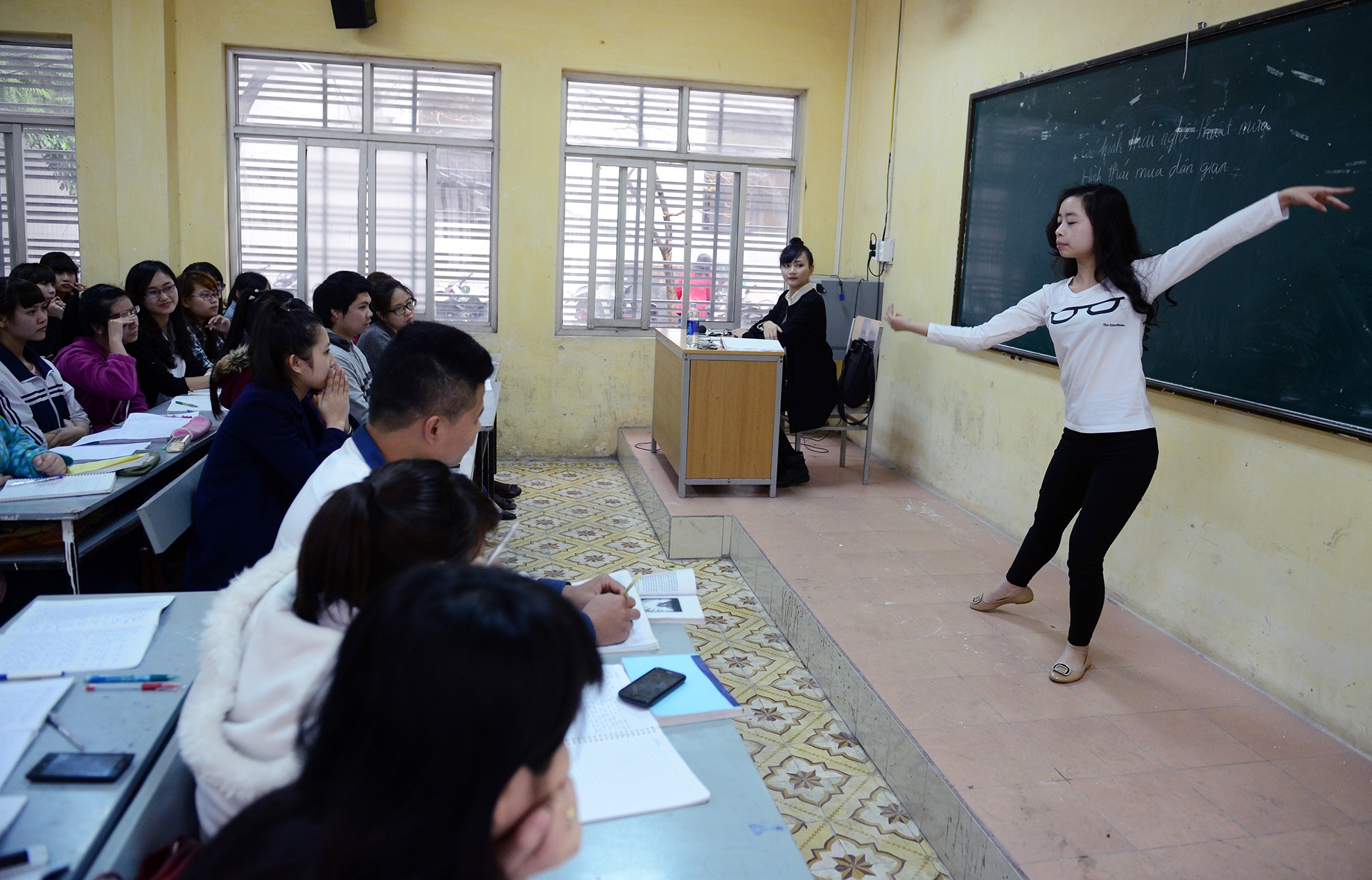 | Sau giờ lên lớp dạy lý thuyết cho sinh viên, sàn tập múa của trường là giảng đường thứ hai của cô. Cô gái xứ Nghệ tốt nghiệp loại giỏi trường cao đẳng Múa Việt Nam khoá 2002-2006. |