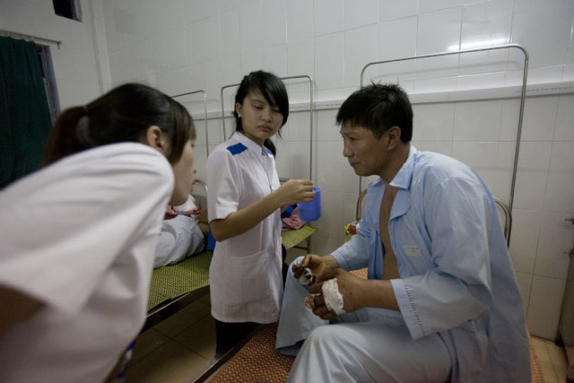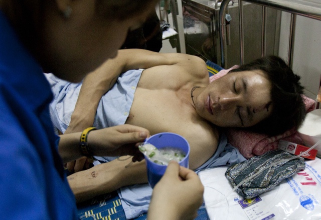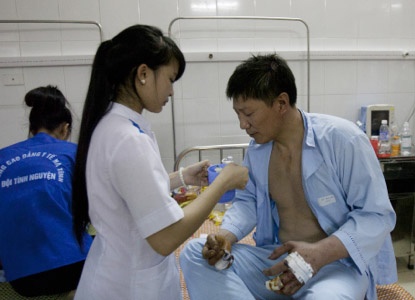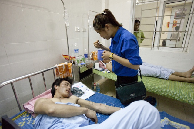 | Sau vụ xô xát ngày 14/5, các công nhân Trung Quốc được chăm sóc tại bệnh viện. |