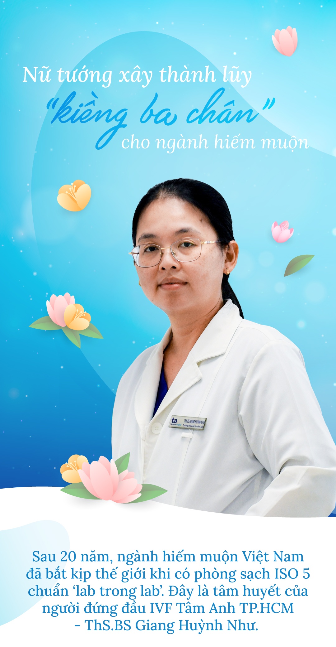 Với đội ngũ IVF Tâm Anh - trong đó có ThS.BS Giang Huỳnh Như - phòng lab phôi học được ví như “trái tim” của một trung tâm hỗ trợ sinh sản và đóng vai trò quan trọng trong các phương pháp điều trị thụ tinh ống nghiệm. Cụ thể, đây là nơi thực hiện các kỹ thuật liên quan đến quá trình tạo phôi với điều kiện nuôi cấy được kiểm soát chặt chẽ, mô phỏng môi trường bên trong ống dẫn trứng và tử cung tự nhiên của người mẹ.