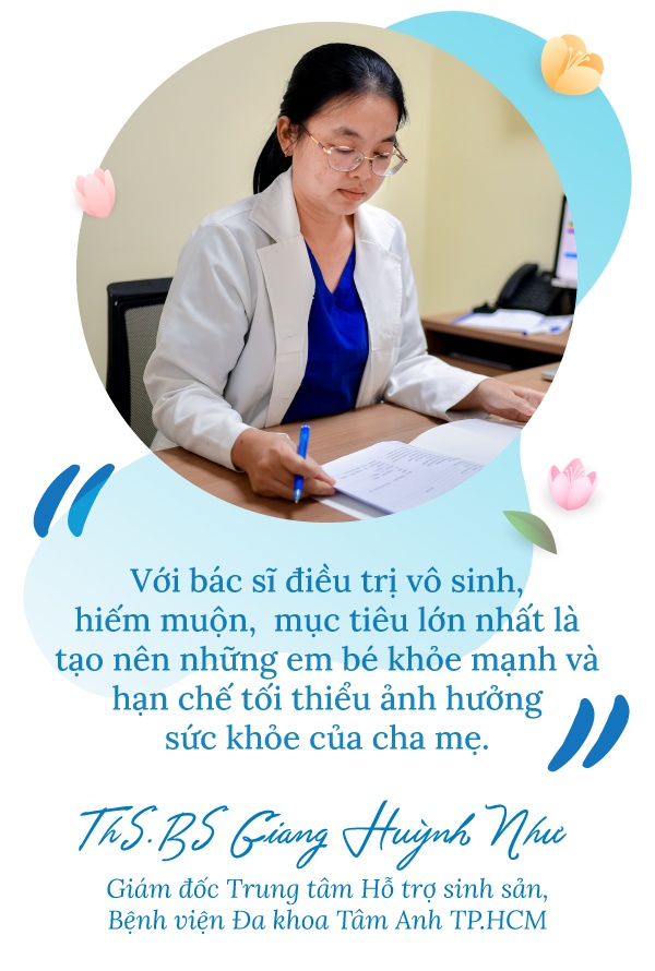 Với bác sĩ Như, sau 20 năm, cảm xúc dâng trào mỗi khi bệnh nhân đón nhận tin vui làm cha, mẹ vẫn vẹn nguyên như lần đầu. Nữ bác sĩ thổ lộ đây là niềm hạnh phúc và động lực để đội ngũ IVF Tâm Anh không ngại khó khăn, ươm từng mầm sống, mang cơ hội làm cha mẹ đến với các cặp vợ chồng.