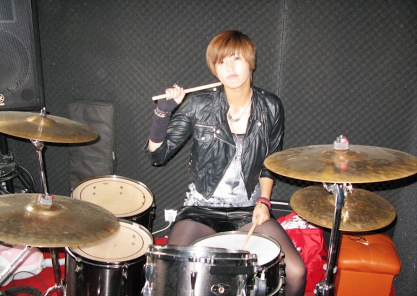 | Zhao Lina từng là tay trống trong một ban nhạc do cô và bạn bè lập nên. |