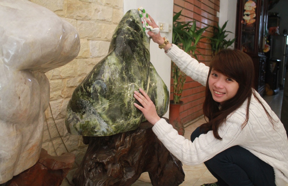 Bố Thúy Vi bán đá phong thủy, trong nhà cô có rất nhiều đá đẹp.