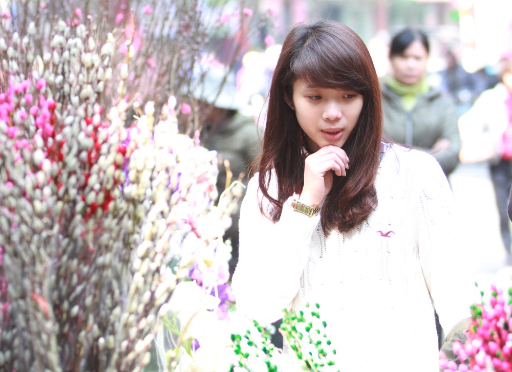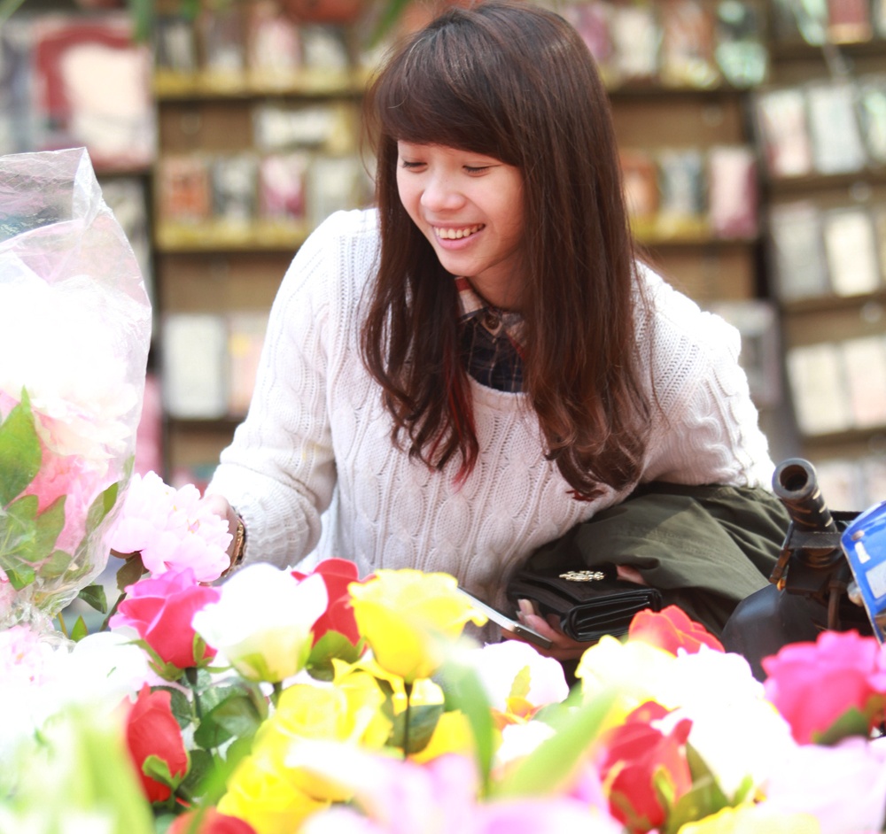 | Trên đường đi sắm hoa, nữ VĐV wushu mê mẩn với chú cún con đáng yêu. |