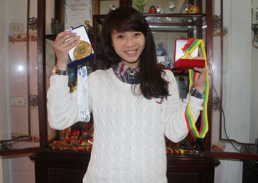 Tấm HCV thế giới và HCV SEA Games mà Thúy Vi giành được trong năm 2013.