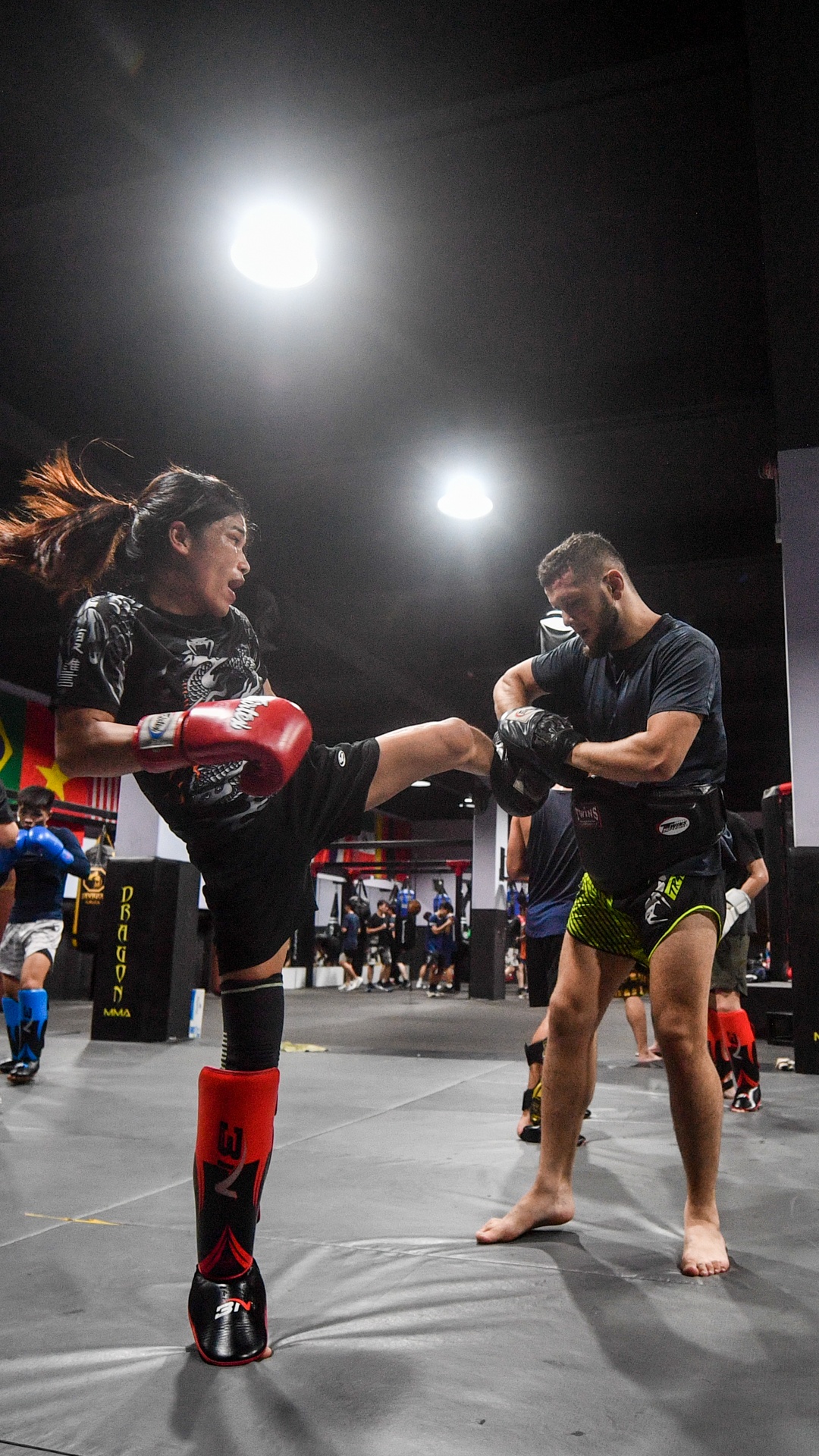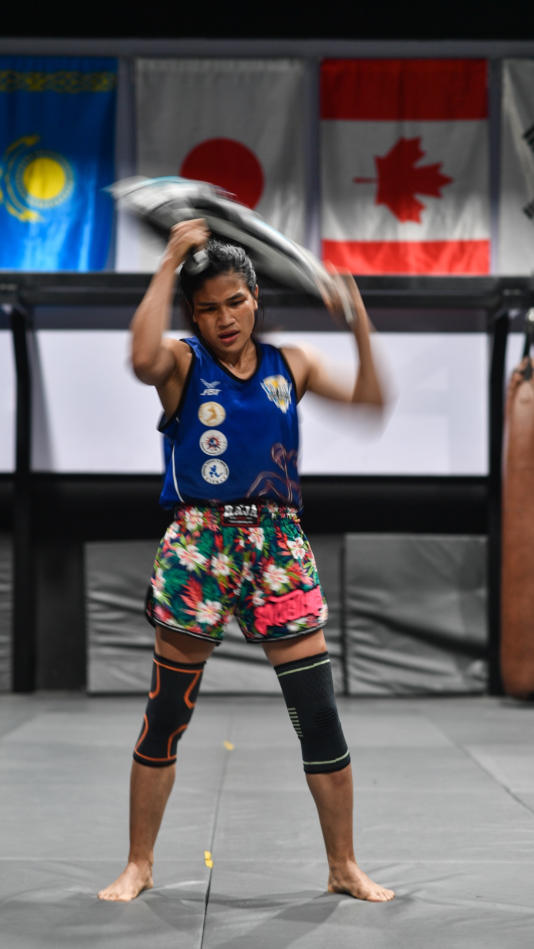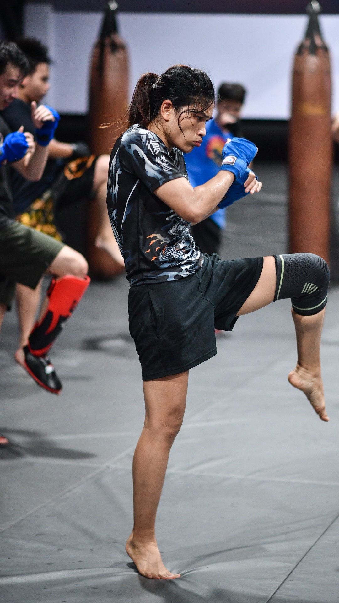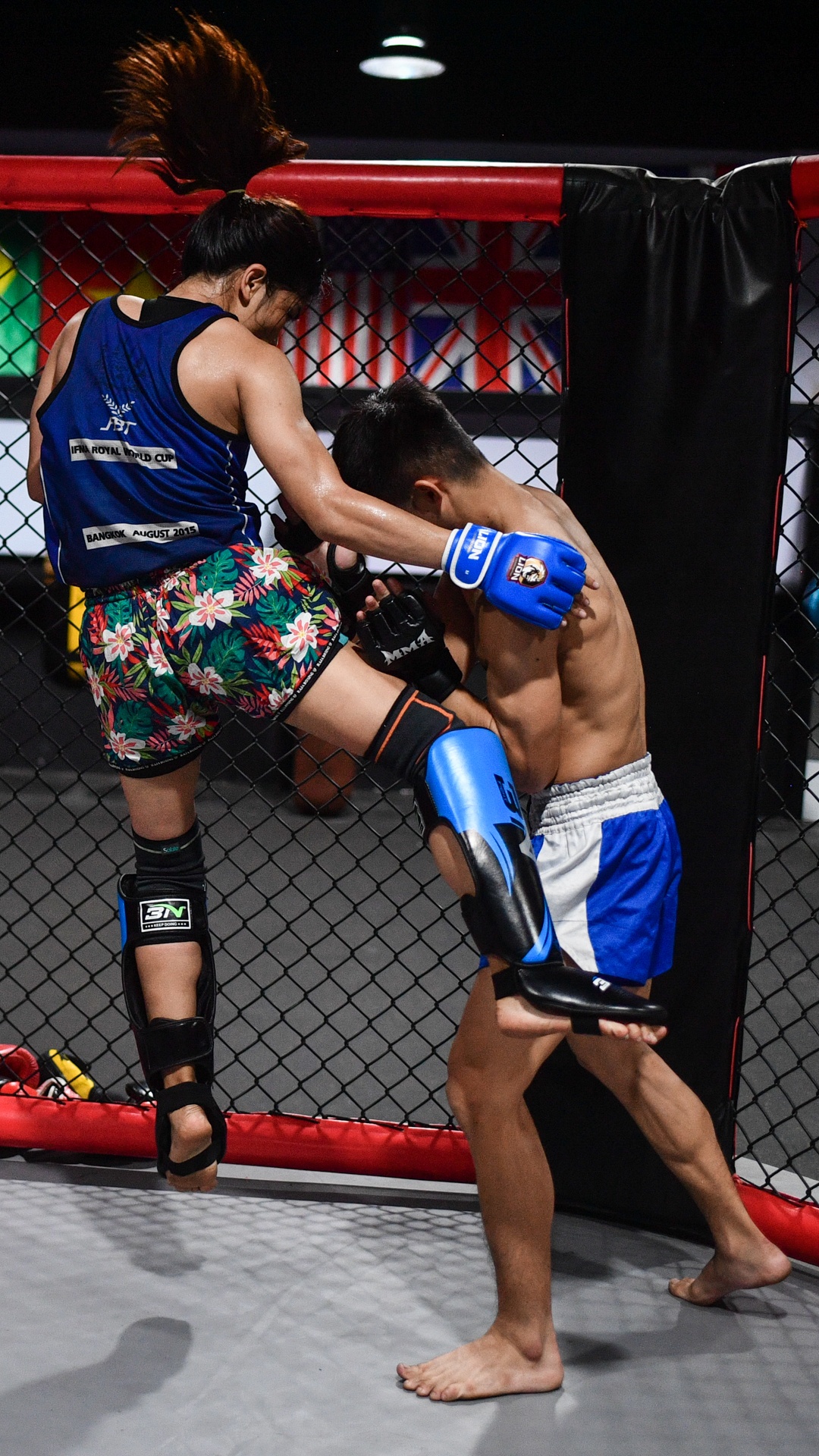 | Với những kỹ thuật Muay Thái đã thành thục, tôi vận dụng và liên tục áp đảo đối phương bằng những đòn lên gối. |