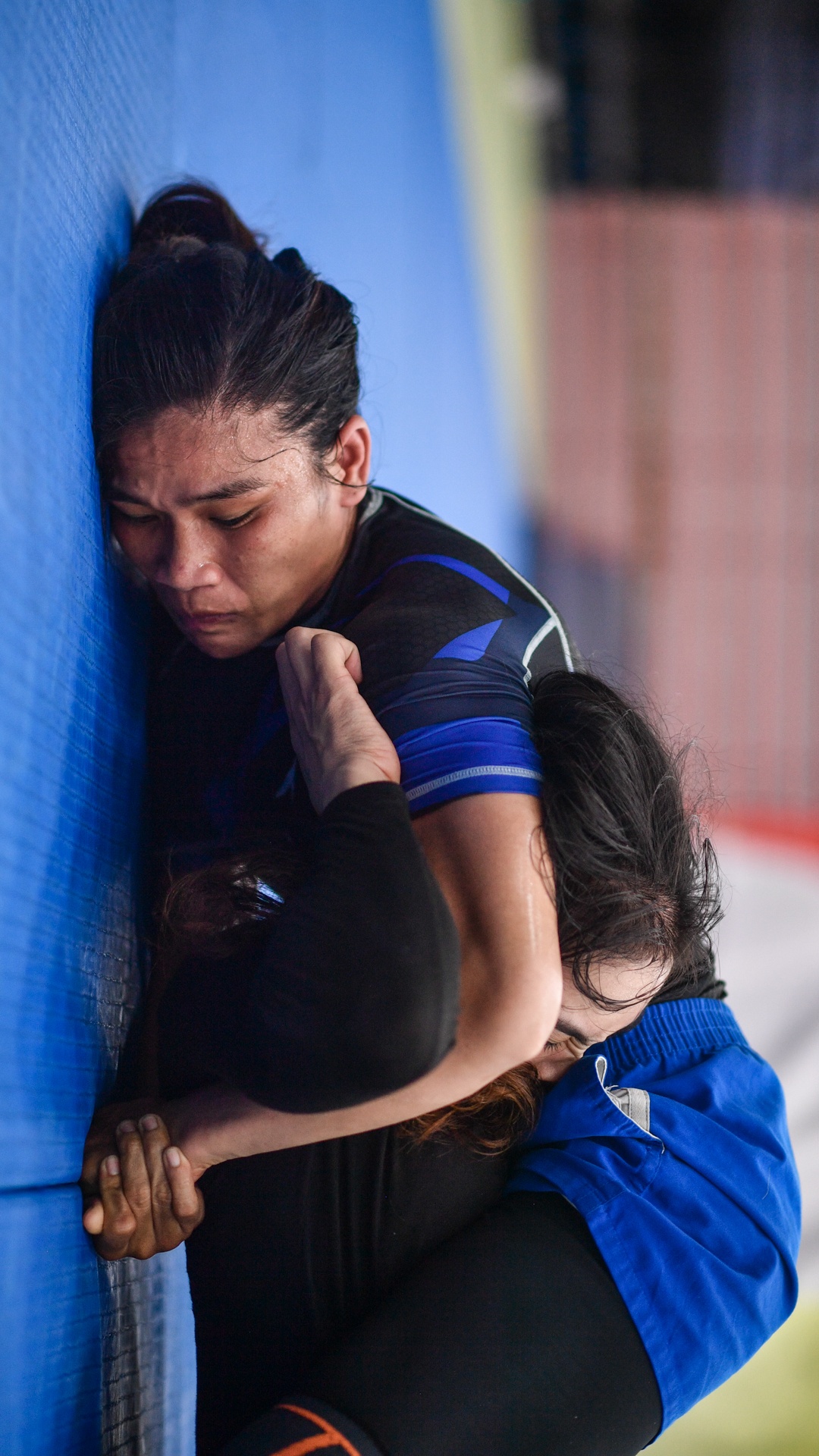 | Trong một vài giây không để ý, một cú siết cổ khiến tôi gần như không thở được. Những buổi luyện tập này rất khắc nghiệt, tôi phải làm quen với việc có thể đối mặt với những đòn đánh hiểm hóc từ các môn võ môn khác nhau. |