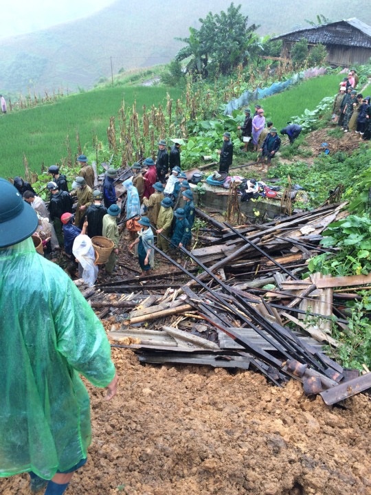 Theo nhân chứng, thời điểm trên trời mưa tầm tã, hầu hết các gia đình đã tắt điện đi ngủ. Phát hiện sự việc, nhiều người hô hoán tháo chạy nhưng gia đình anh Triệu không kịp thoát ra. Toàn bộ căn nhà bị đất vùi lấp. Một số hộ khác cũng ngập bùn, người may mắn thoát.