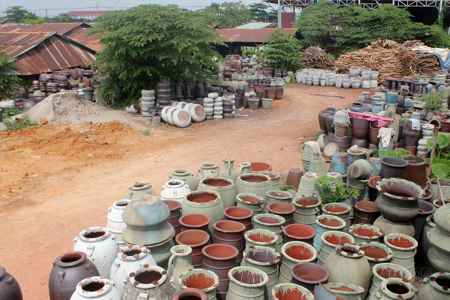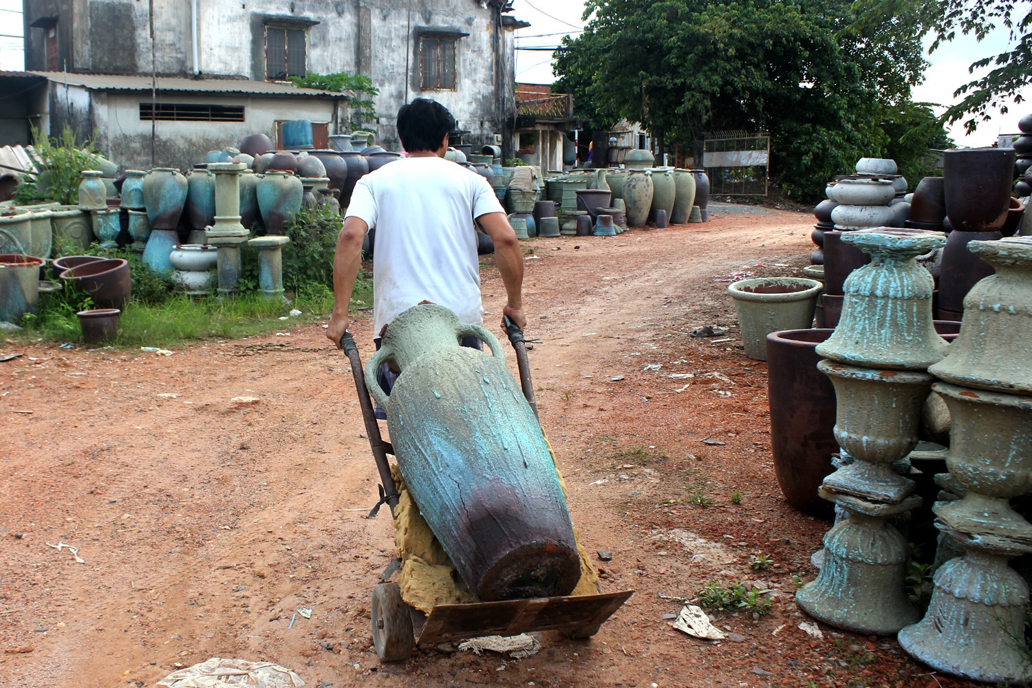 | Sau khi ra lò, gốm được tập kết vào bãi chờ xe đến chở. Trung bình mỗi tháng, một lò sản xuất được hơn 7.000 sản phẩm gốm giả cổ. |