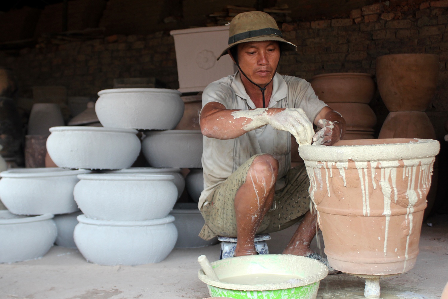 Toàn bộ các công đoạn đều thực hiện bằng tay. Do vậy, mỗi sản phẩm đều lưu những dấu ấn riêng của từng thợ. Anh Thắng, một thợ gốm có 15 năm kinh nghiệm, chia sẻ, thợ làm gốm rất cực nhưng thu nhập lại thấp. Mỗi sản phẩm hoàn chỉnh thợ chỉ được trả công 10.000-18.000 đồng. Tuy mức lương thấp, nhưng ai đã làm gốm thì gắn bó và không muốn bỏ nghề.