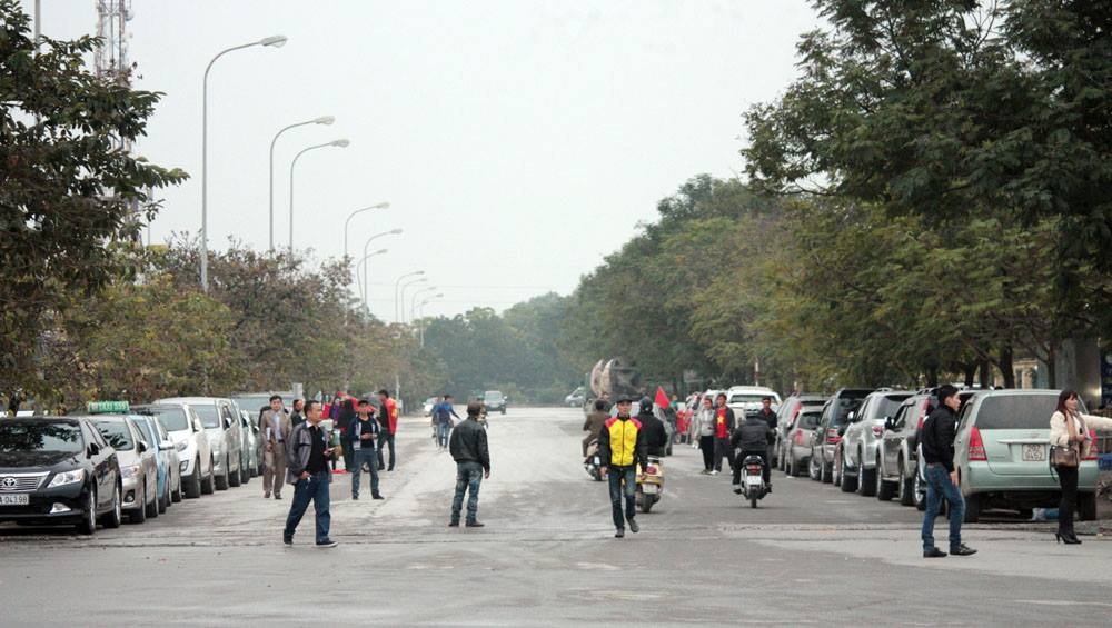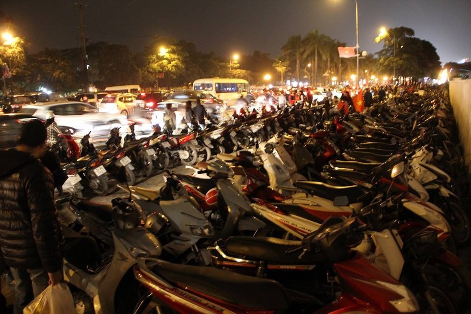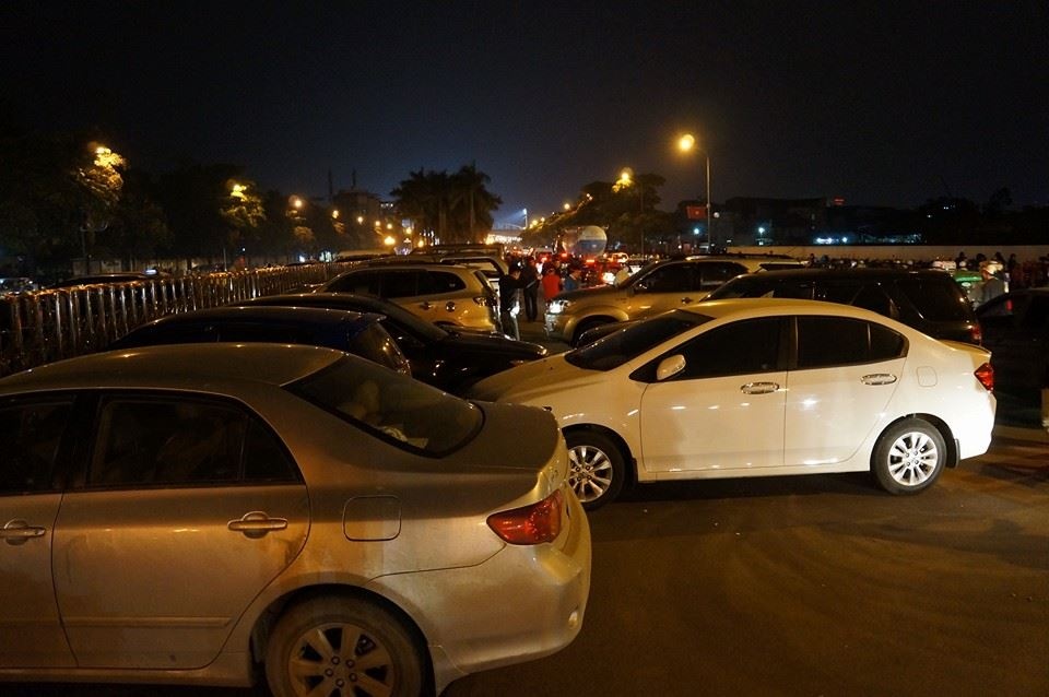 | Một số bãi xe tự phát còn xếp xe 2 hàng tràn cả ra lòng đường gây ách tắc giao thông nghiêm trọng quanh sân vận động Mỹ Đình. |