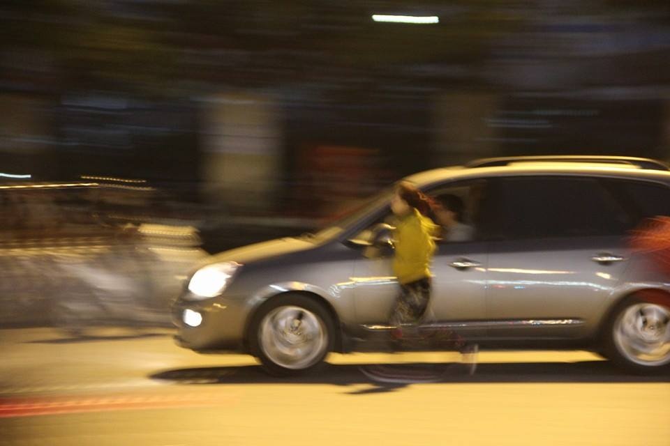 | Mạo hiểm lao ra giữa đường chặn xe bắt gửi. |