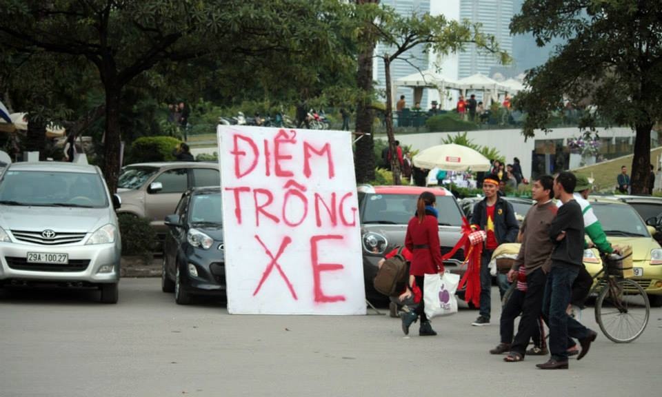 | Càng gần tới giờ bóng lăn, các bãi gửi xe càng "kiêu" và dễ dàng hét giá tới nửa triệu cho mỗi lượt gửi ôtô, 100.000 đồng/lượt gửi xe máy. |