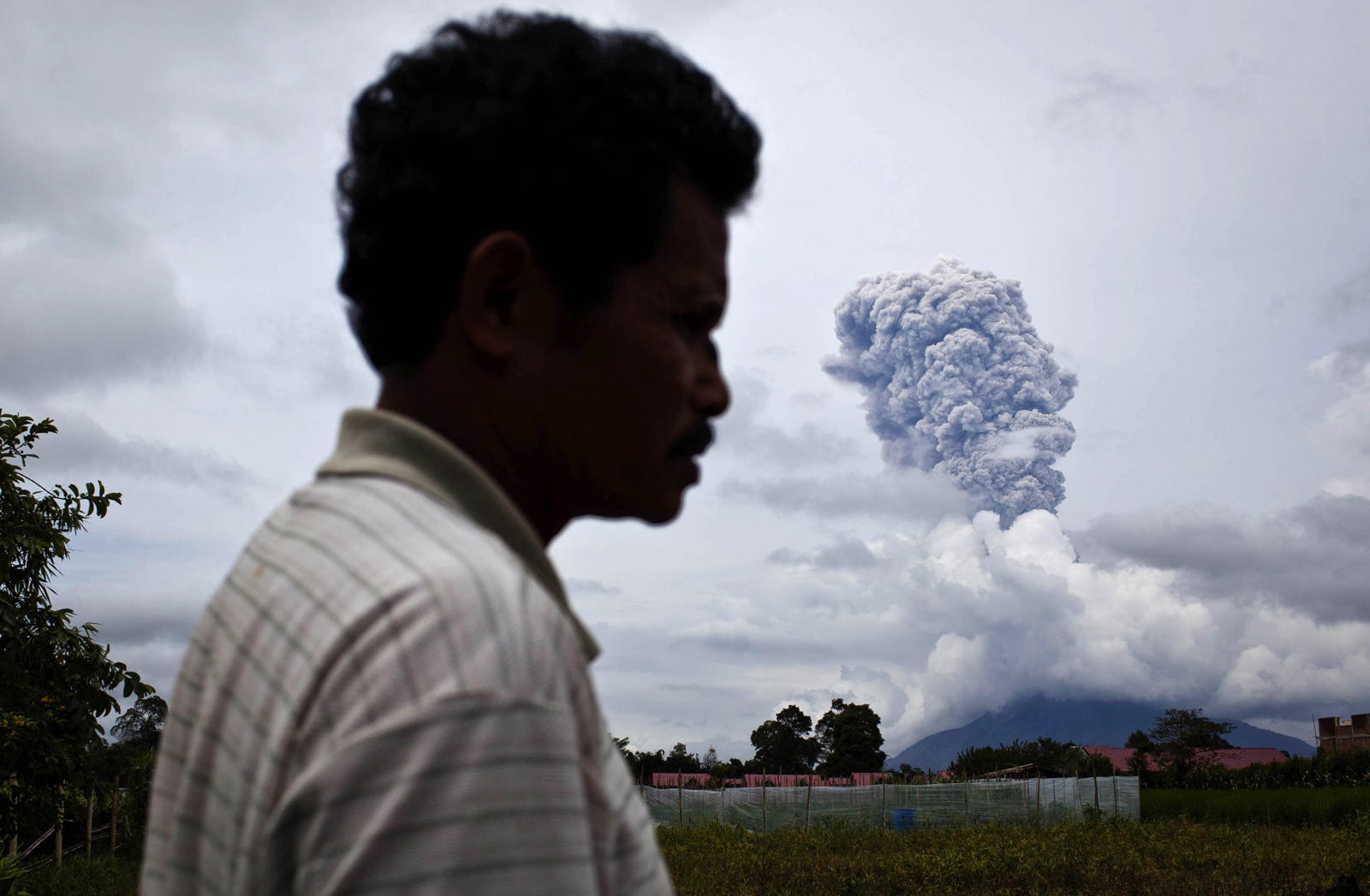 Sinabung đã phun trào từ nhiều ngày qua. Chính quyền đã yêu cầu người dân xung quanh núi lửa sơ tán để bảo đảm an toàn. Ảnh: Getty Image.