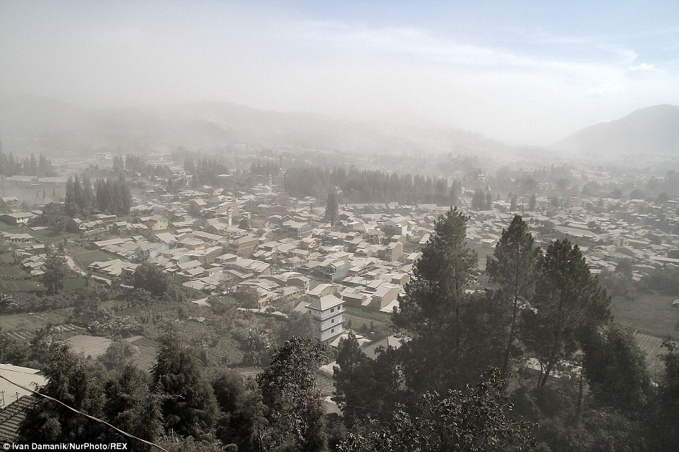 Dù việc núi lửa "thức giấc" rất nguy hiểm và khó dự đoán nhưng giới chức Indonesia cũng đang đau đầu trong việc sơ tán nông dân tại đây vì đất đai gần núi Sinabung rất màu mỡ. Ảnh: REX