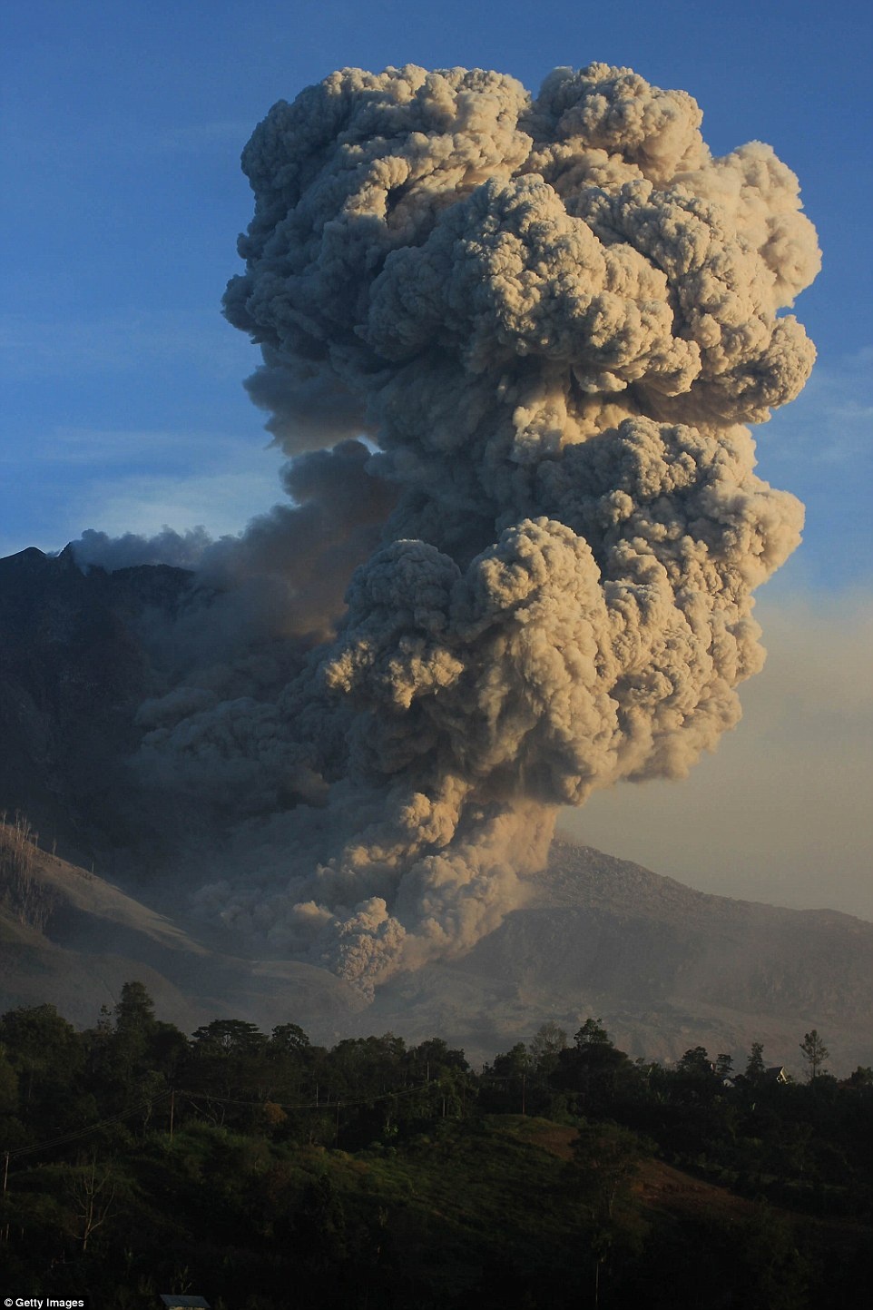 Đợt phun trào vừa xảy ra bắt đầu từ hôm 5/10 khiến hàng trăm người phải sơ tán khẩn cấp. Hiện nay, núi Sinabung là một trong 130 núi lửa hoạt động tại quốc đảo Indonesia. Ảnh: EPA