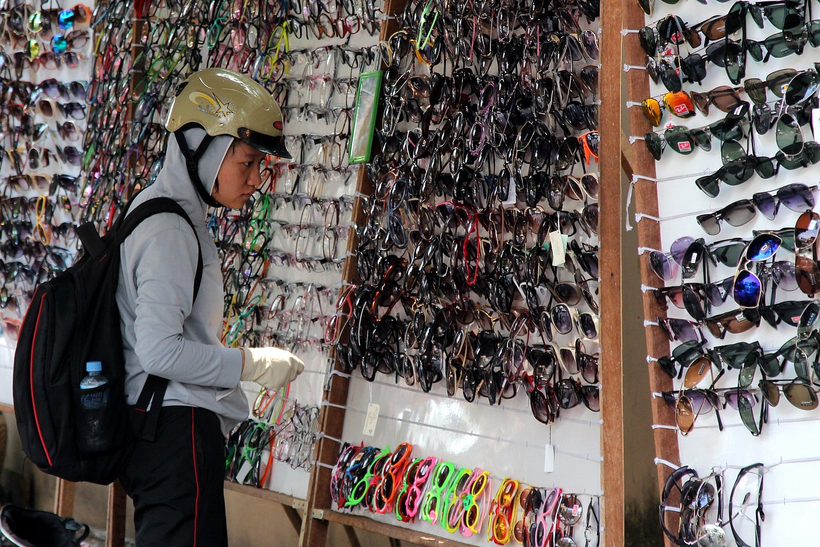 Mắt kính mát cũng là mặt hàng hút khách những ngày này. Tuy nhiên, theo các cửa hàng mắt kính trên đường Hồ Xuân Hương, quận 3, chỉ loại giá rẻ, từ 80.000 - 200.000 đồng/chiếc mới đắt hàng.