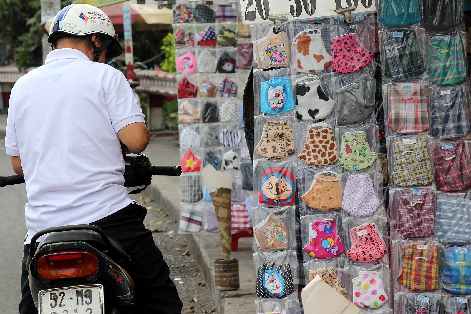 Nhiều gian hàng bán khẩu trang và găng tay giá rẻ cũng sẵn sàng ven đường để phục vụ kịp thời cho khách lỡ đường.
