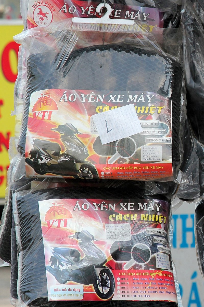 | Một sản phẩm đang đắt hàng những ngày nóng này là áo bọc yên xe máy cách nhiệt, đây là sản phẩm giúp yên xe máy không bị quá nóng khi đi ngoài nắng. |