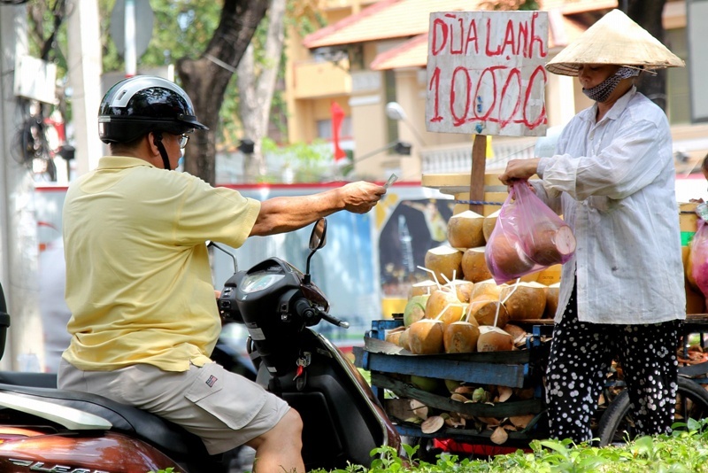 | Dừa tươi được nhiều khách lớn tuổi lựa chọn. |
