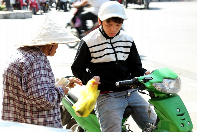 | Dưới nắng nóng, nhiều khách đi đường tấp vào lề để giải khát. |