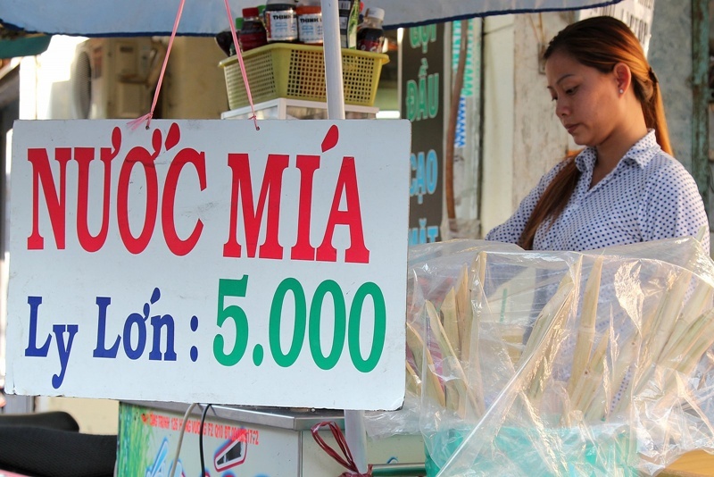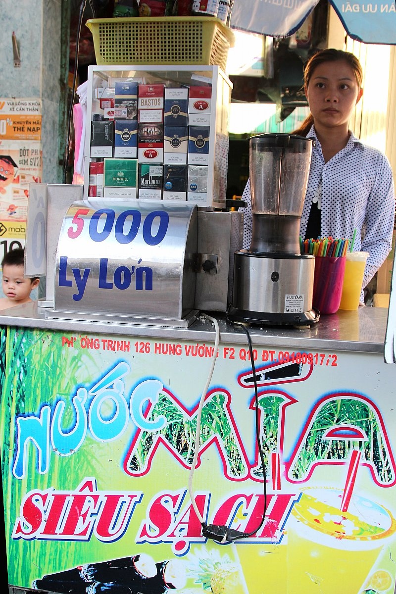 | Mỗi ly nước mía có giá 5.000 đồng, một xe nước mía những tháng nắng nóng mang lãi cho chủ 10 – 15 triệu đồng sau khi trừ chi phí. |