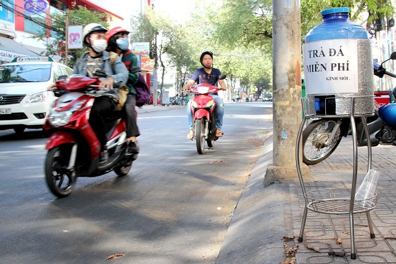 | Ngoài những loại nước giải khát bình dân được ưa chuộng kể trên, những bình trà đá miễn phí được đặt trên nhiều tuyến đường cũng góp phần làm giảm cơn khát của người đi đường. |