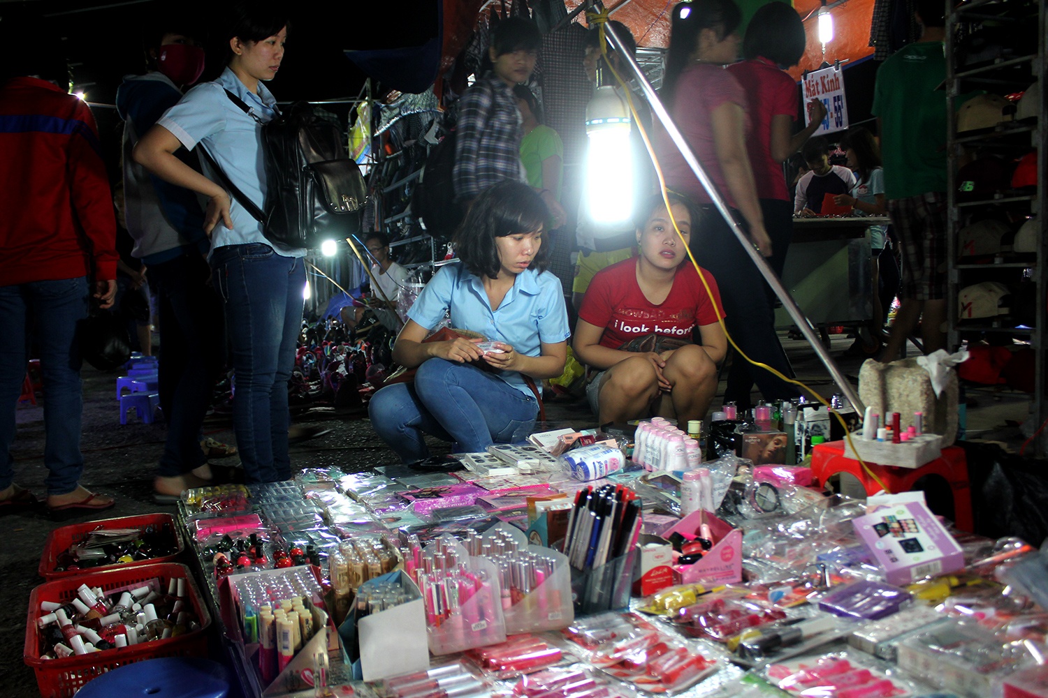 Các tuyến đường lớn như đường Cộng Hòa (quận Tân Bình), Lý Thái Tổ (quận 10), Cách Mạng Tháng 8 (quận 3), Quang Trung (Gò Vấp), Khu vực làng Đại học Quốc gia TP.HCM... là thiên đường của các loại mỹ phẩm giá rẻ. Giờ tan sở cũng là lúc những gian hàng này bắt đồng hoạt động. Các loại mỹ phẩm được phân thành từng cụm cho khách hàng tiện lựa chọn, càng về đêm khách mua càng đông, chủ yếu là công nhân, học sinh, những người có thu nhập thấp.