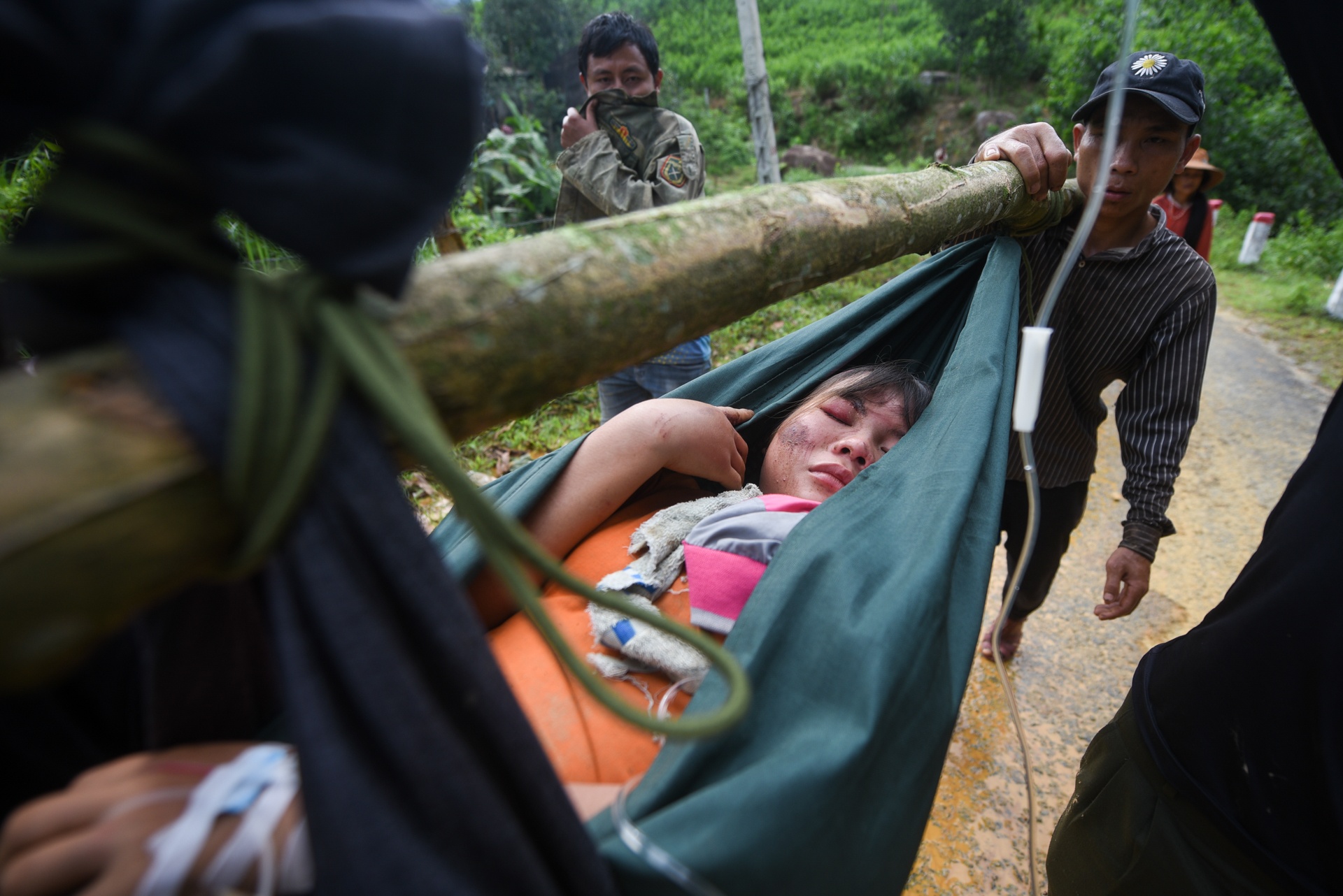 Trên quãng đường 16 km từ hiện trường sạt lở Trà Leng đến quốc lộ 40B là hàng chục địa điểm sạt lở lớn nhỏ. Phương tiện không thể đi lại, những nạn nhân bị thương phải nằm trên võng để 5-10 người thay phiên nhau khiêng đến nơi có lực lượng quân đội và y tế tiếp ứng.