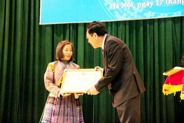 | Cô giáo Vàng Thị Ghếnh trong lễ vinh danh nhà giáo tiêu biểu giai đoạn 2008-2013. |