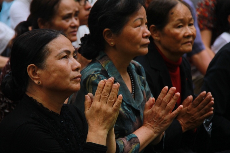 | 2 nhà sư đọc kinh cầu mong phúc lành cho vong linh Đại tướng. |