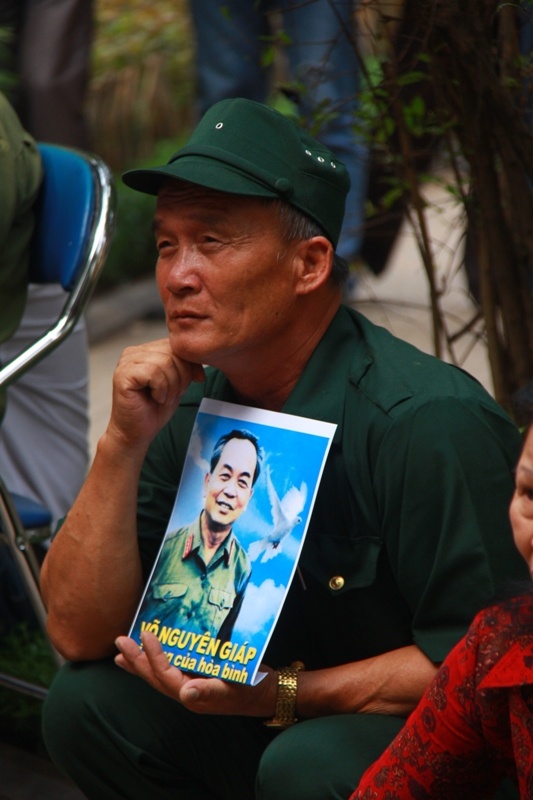 | Cựu quân nhân Tô Xuân Thanh (60 tuổi) từ Thanh Hóa ra Hà Nội để dõi theo lễ tang của Đại tướng. |