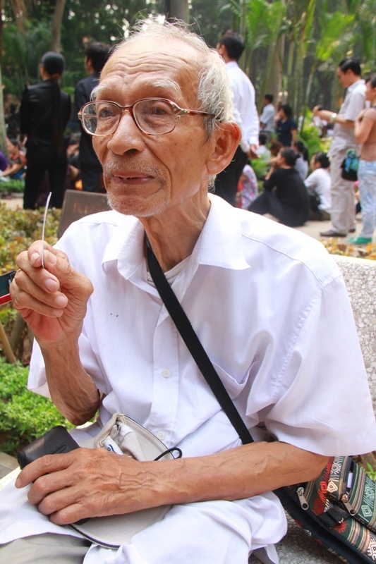 | Ông Nguyễn Văn Sự đã 85 tuổi - người dịch hồi ký của Bác Hồ và có duyên gặp Bác Giáp cũng tới dự. |