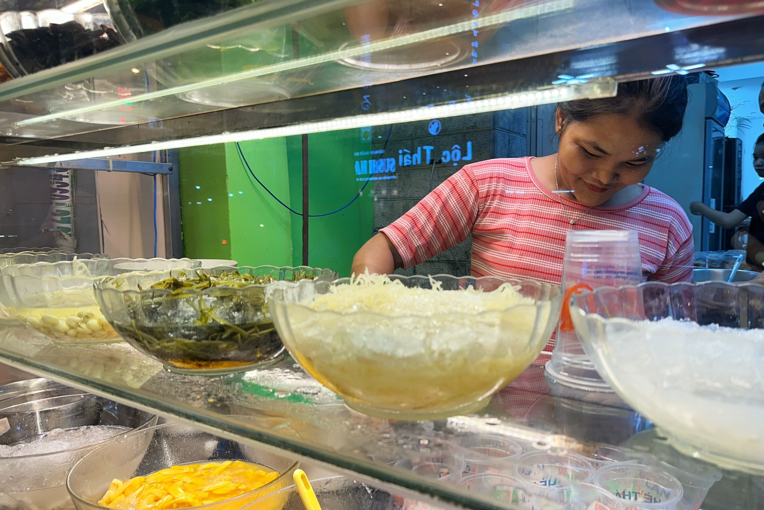 Ngoài các điểm bán nước mát, cửa hàng Chè Thái Cô Phượng nằm trên đường Nguyễn Tri Phương (quận 10) cũng ghi nhận sức mua tăng lên, đặc biệt sau giờ cơm tối.