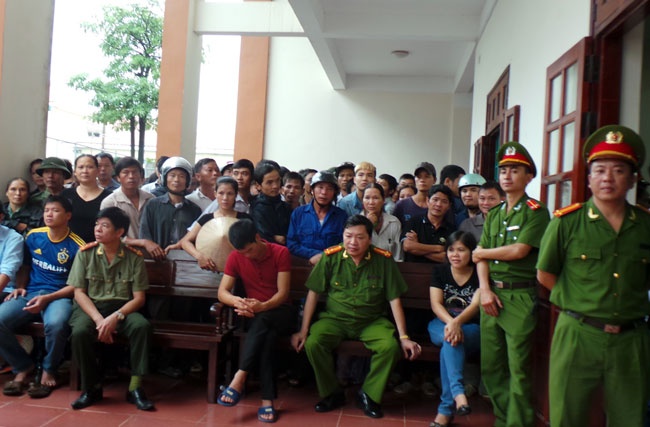 | Cả trăm người đứng bên ngoài phòng xử theo dõi. Ảnh: Lê Tú. |