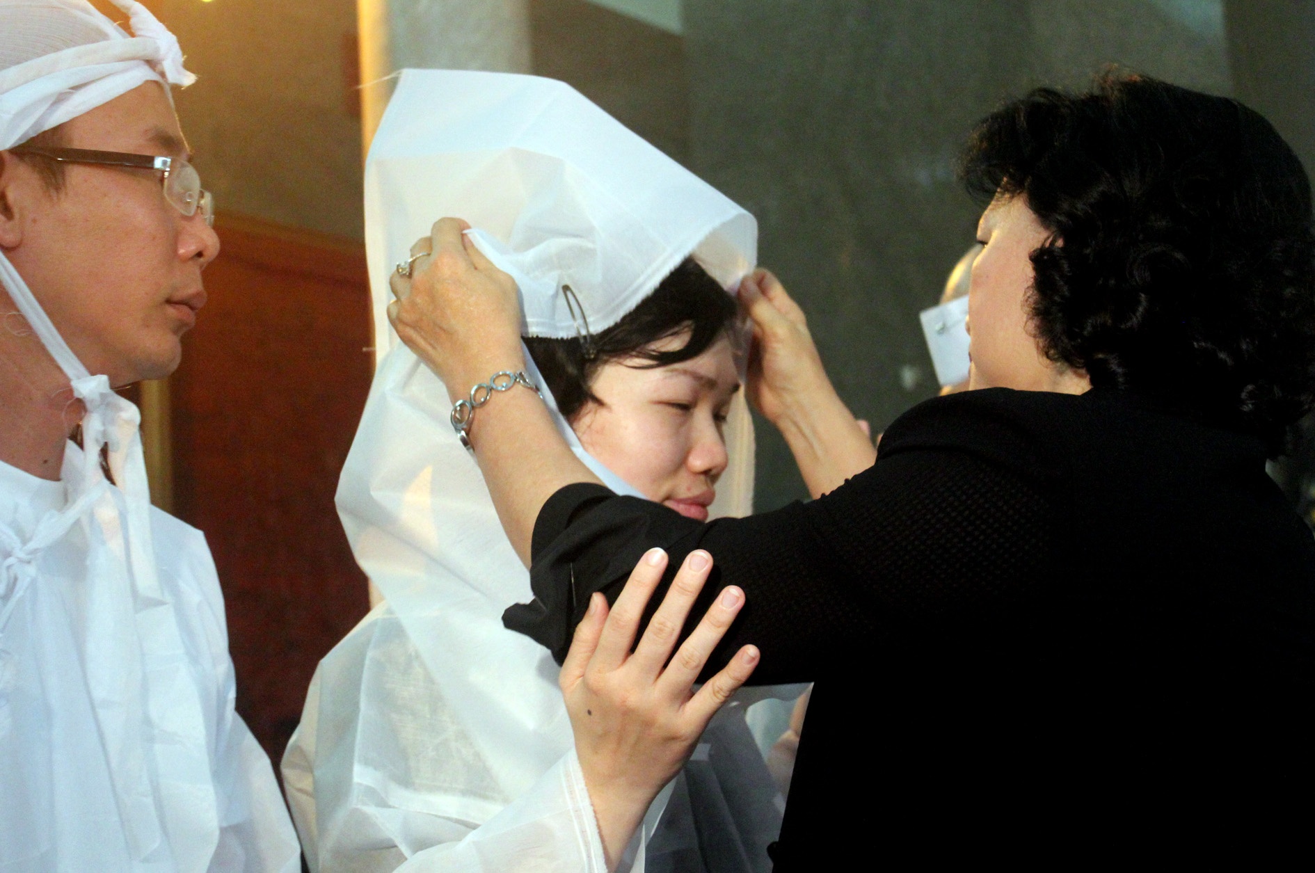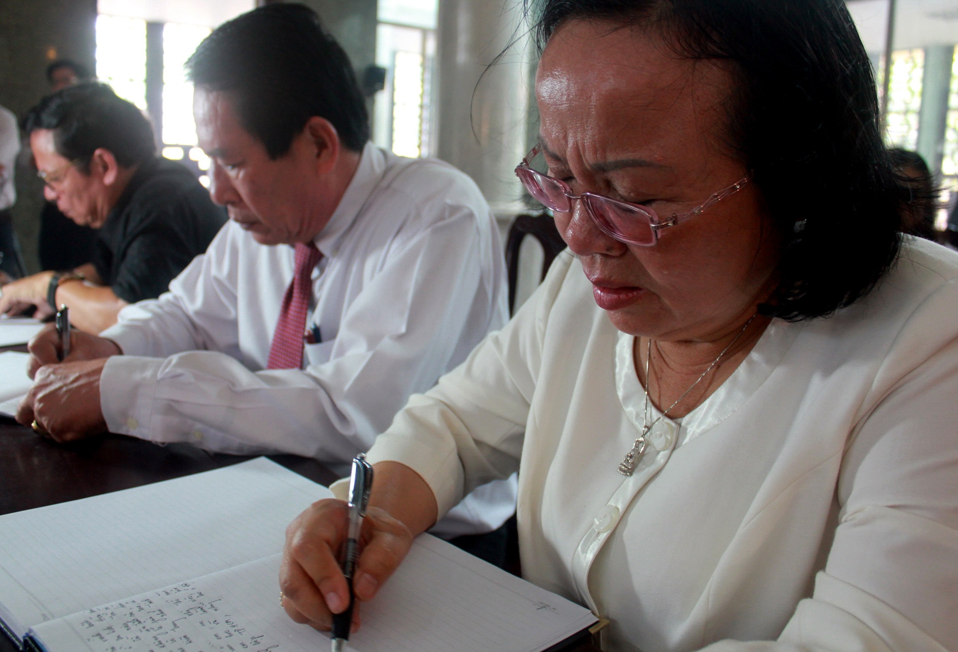 | Đồng đội, bạn bè, đồng nghiệp không nén được nước mắt khi ghi vào sổ tang. |