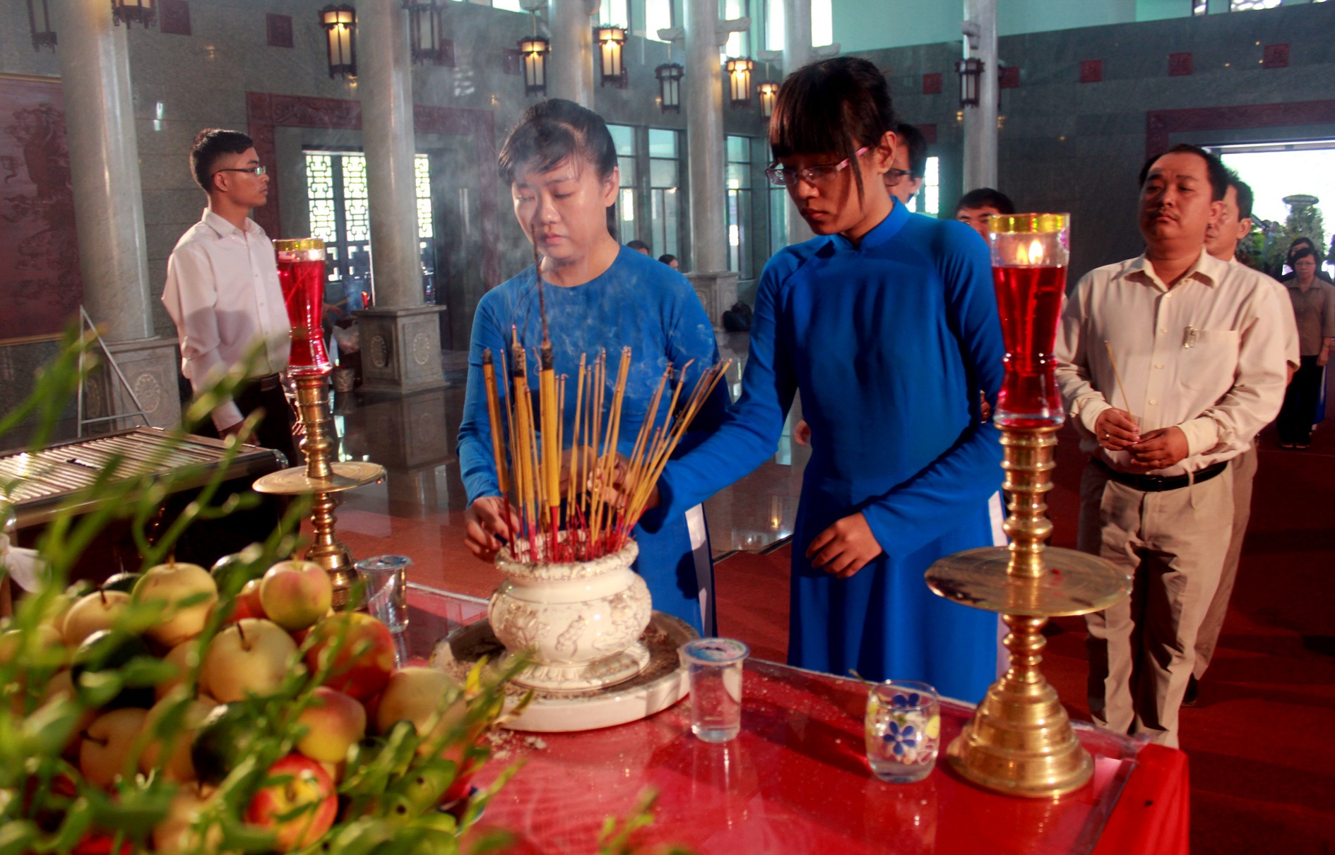 | Đông đảo đồng đội, bạn bè, người thân, người dân thành phố đến thắp hương viếng linh cữu "nụ cười chiến thắng" Võ Thị Thắng. |