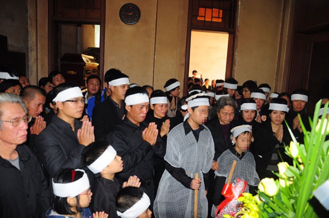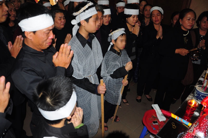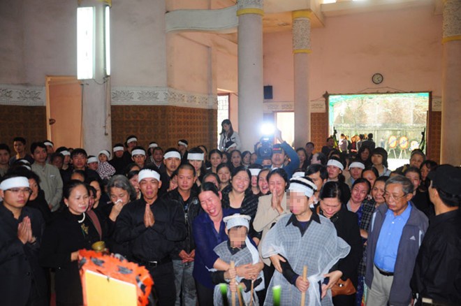 | Tiếng khóc vang lên trong nhà tang lễ bệnh viện Thanh Nhàn khi gia đình phát tang cho chị Huyền. Ít người cầm được nước mắt khi tham dự lễ tang mà không thể nhìn thấy di hài của nạn nhân vụ việc xảy ra tại thẩm mỹ viện Cát Tường. |