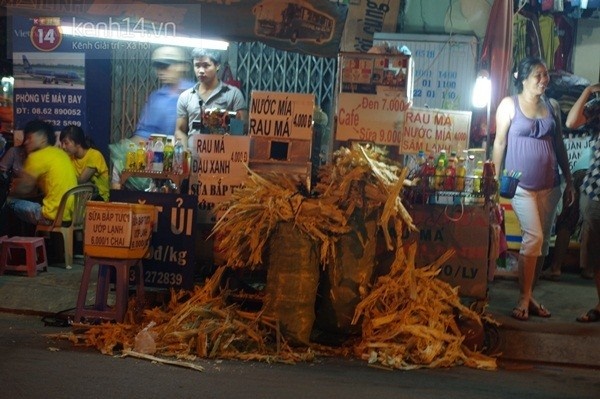 | Bã mía vứt thành đống ngay cạnh máy ép, bàn bán nước. |