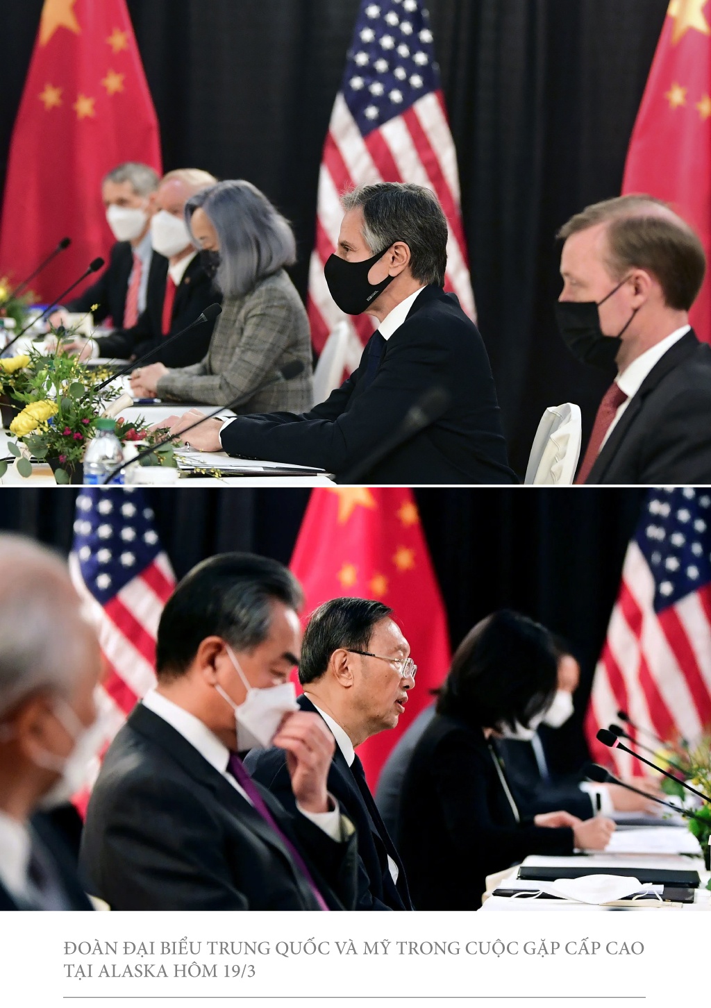 Trước ống kính máy quay, Ngoại trưởng Mỹ Antony Blinken cùng Cố vấn an ninh quốc gia Jake Sullivan, và Ủy viên Bộ Chính trị Trung Quốc Dương Khiết Trì cùng Ngoại trưởng Vương Nghị có màn đối đáp và chỉ trích kịch liệt ngay trong phiên khai mạc, trái ngược với những cuộc gặp ngoại giao trước đây.