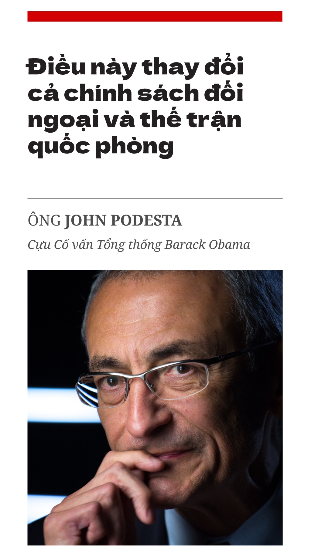 “Điều này thay đổi cả chính sách đối ngoại và thế trận quốc phòng”, ông John Podesta, một cựu quan chức của chính quyền Barack Obama, khẳng định.